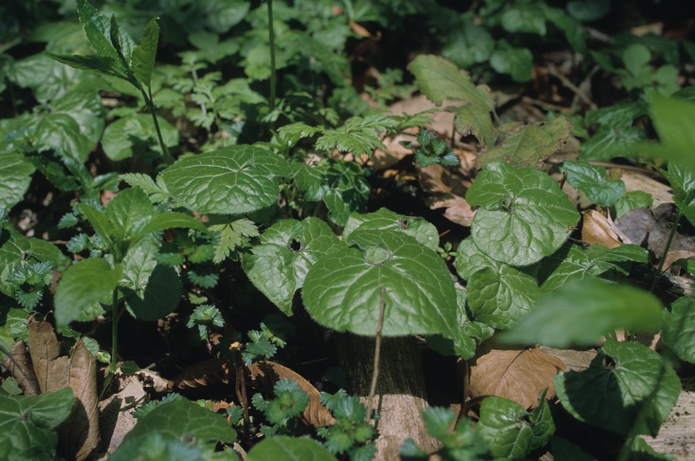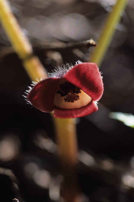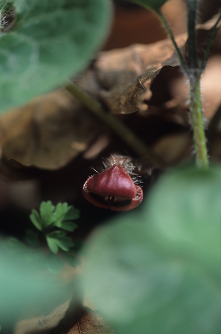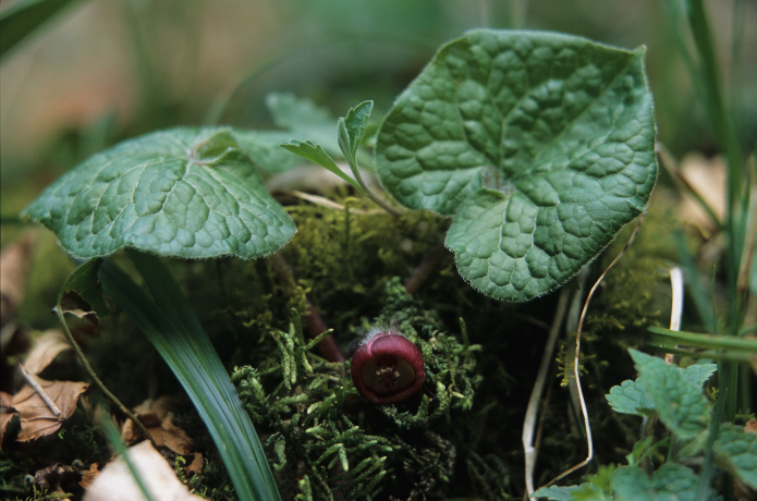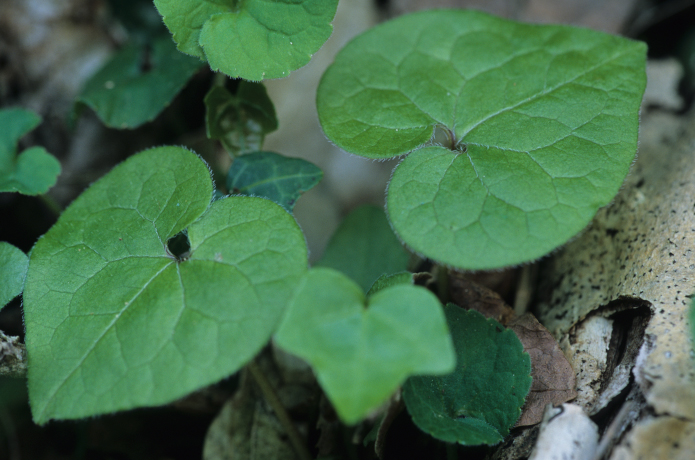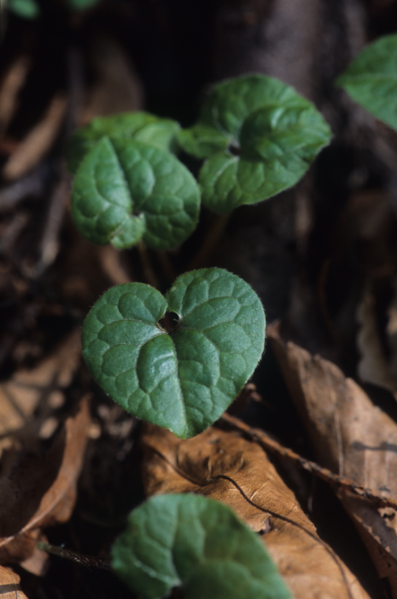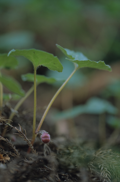 この紋所が目に入らぬか!の三つ葉葵。このフタバアオイの葉っぱを三つ並べているもんなんです。花は滅茶地味ですけど,僕は好きな花なんですよ。ミヤコアオイは地面というかほとんど地中に花が付いているようなものなんですが,この花は実に見やすいですね。